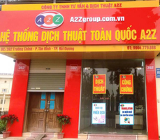 Dịch Thuật A2Z được thành lập từ năm 2010 đến nay với gần 60 văn phòng Dịch thuật trên toàn quốc phục vụ nhu cầu dịch thuật trực tiếp tại văn phòng của khách hàng trên mọi tỉnh thành, A2Z đã và đang khẳng định được vị thế Dịch thuật một trong những công ty hàng đầu, uy tín nhất trên thị trường Việt Nam.